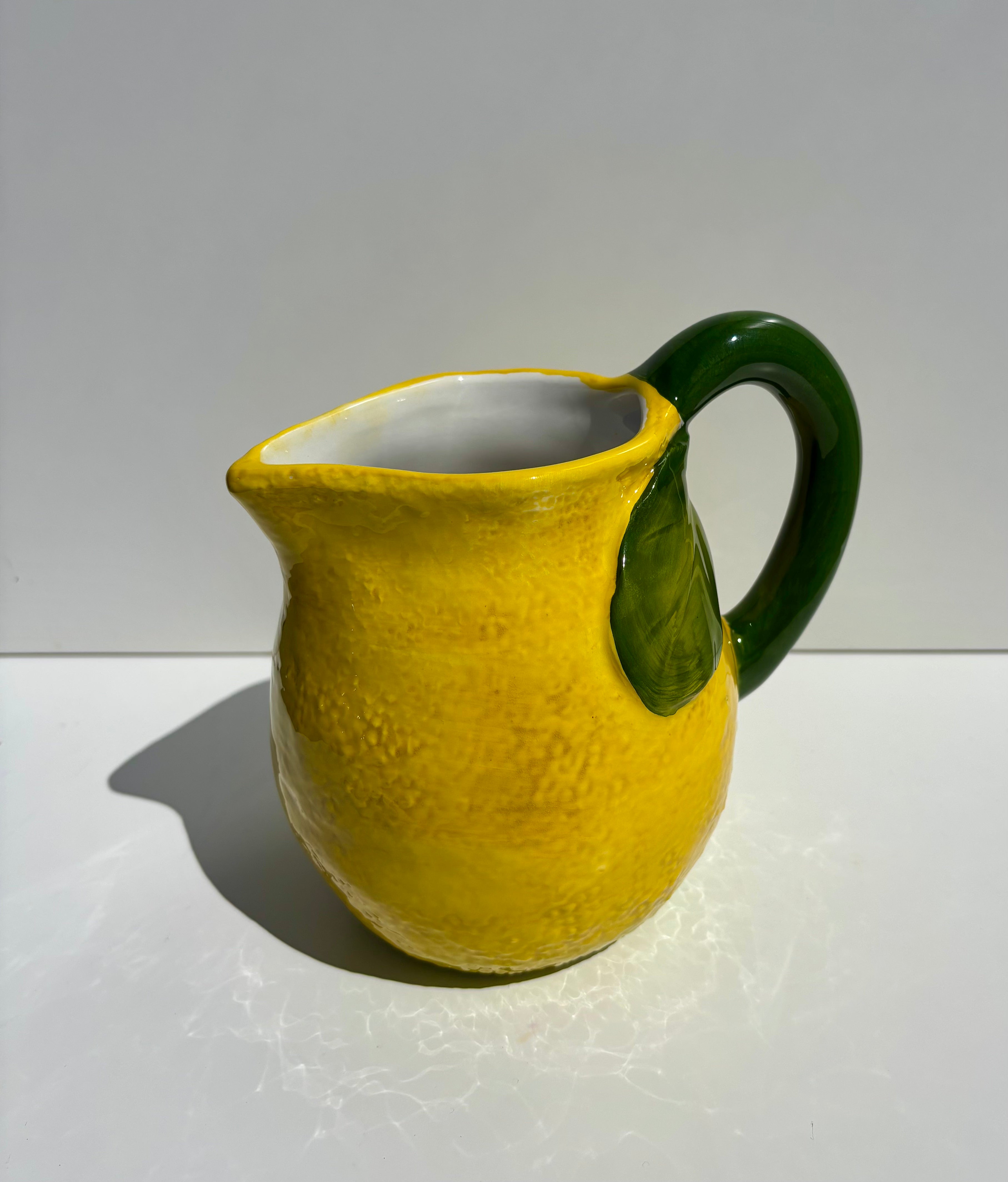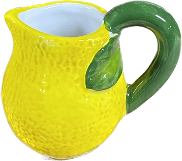 Geben Sie Ihrer Tischabdeckung mit dem eleganten Zitronenkrug von Caja Company ein hellgrünes Gewürz. Dieser Krug eignet sich perfekt zum Servieren von Milch oder Sahne für den Kaffee. und fügt jeder Gelegenheit eine frische und sommerliche Berührung hinzu.